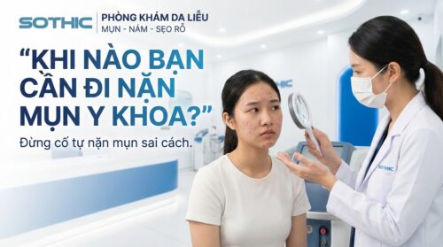 Trong những trường hợp này, bạn nên tìm đến các cơ sở y tế hoặc phòng khám da liễu uy tín như Sothic để được các chuyên gia da liễu tư vấn và tiến hành quy trình lấy nhân mụn chuẩn y khoa bài bản, khoa học.